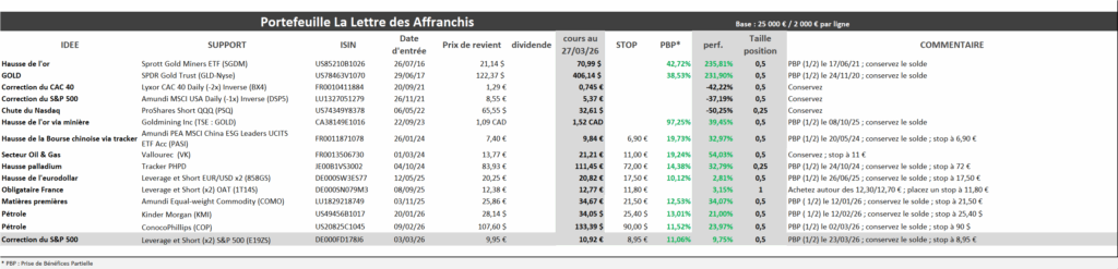 - Trump a de nouveau reporté les frappes contre l’Iran ce 26 mars, vers 21 h 30, alors que le taux à 10 ans atteignait 4,45 % et menaçait de rejoindre les 4,50 % dans la soirée.